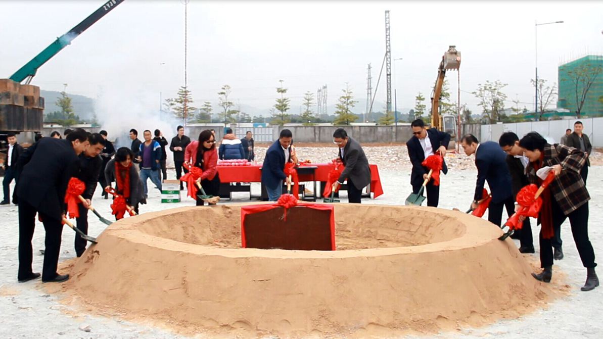 佳都集团、BB贝博艾弗森科技广州总部大楼项目开工奠基仪式开始,董事长刘伟携领导班子成员挥锹奠基。